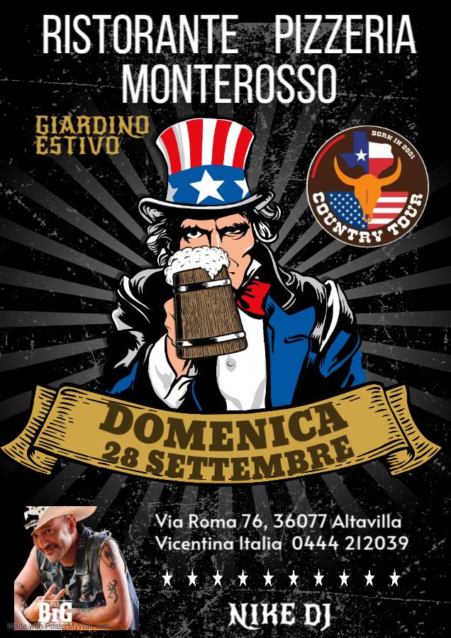 Country Night presso il Ristorante Pizzeria Monterosso Altavilla Vi in consolle Dj Nike