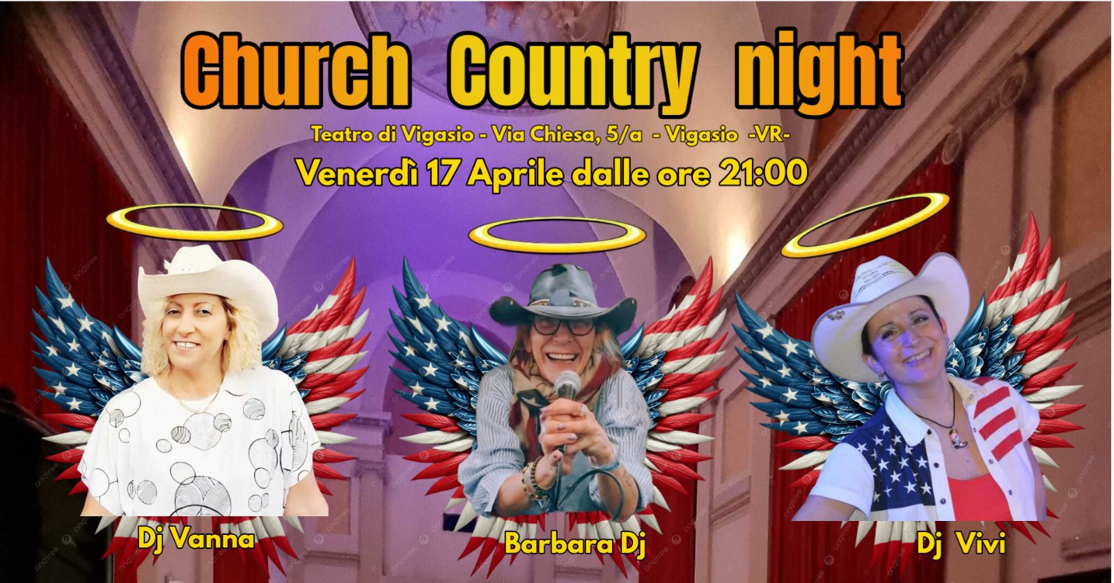 Serata Country all’interno di una Chiesa sconsacrataa Vigasio Vr. In consolle le Charlie’s Angels !!