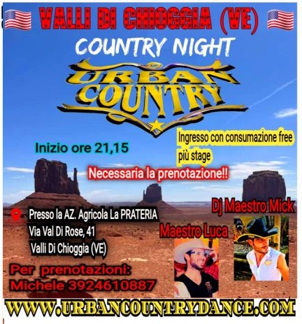 Serata Country all’Azienda Agricola La Prateria a Valli di Chioggia si balla con gli Urban Country. In console Dj Mick con la collaborazione del Maestro Luca