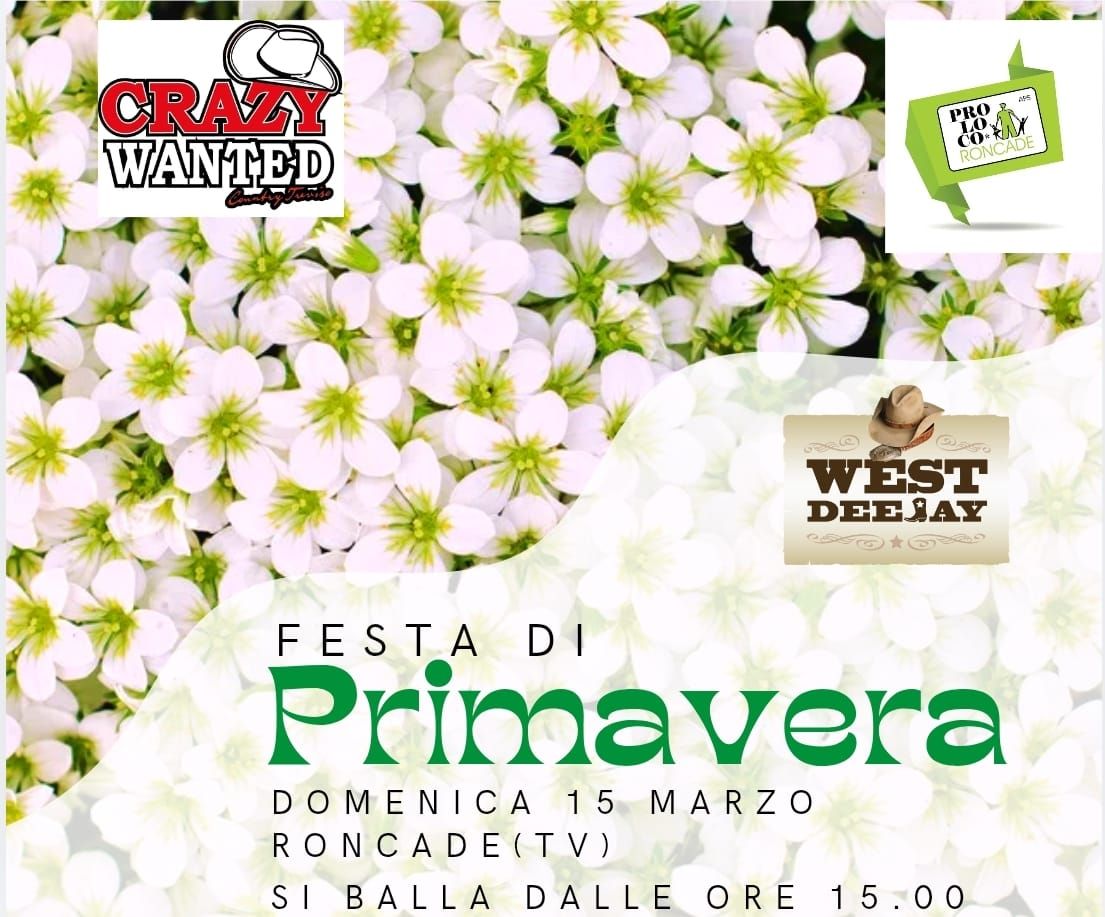 Domenica Pomeriggio con i  Crazy Wanted Country Group  alla FESTA di PRIMAVERA a RONCADE. Si balla dalle ore 15.00 nella centralissima Via Roma con la musica di Dj West